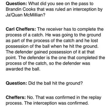 NFL referee Carl Cheffers explains why it was an interception: