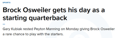 Also, lets not forget that the Broncos have started a backup quarterback while being home underdogs to a Patriots team before.