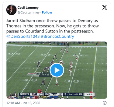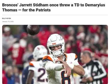 A little over ten years later, the Broncos find themselves in the same spot, starting a backup as home underdogs to New England, but this time with a trip to Super Bowl 60 in Santa Clara on the line.